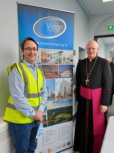 - Vision Contracting’s Wayne O’Halloran with Archbishop Dermot Farrell, Archbishop of the Archdiocese of Dublin.
